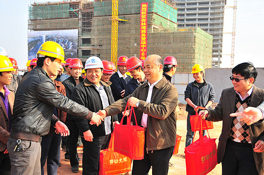 在施工现场,丁副市长宣布了简短讲话,他说:“在春节即将到来之际,由于工程建设需要,施工现场的留守人员不可返乡过节,我代表市委、市政府向留守在现场的施工人员及家属体现诚挚问候,并提前祝各人新春快乐。”随后,丁副市长亲手为工人送上慰问品。丁副市长还要求施工单位在节日期间,一定要科学调理,合理安排生产、生活,增强节日宁静生产监督治理,以洁净整洁的情况、规范良好的秩序,欢度新春佳节。